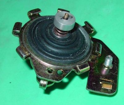 As we turn the temperature control knob on the dash, a cable driven lever rides up or down a ramp or slot in the "cap" and causes a center rod which has a rubber diaphram and a spring loaded cup attached to its interior end, to move away from or against the two respective openings.