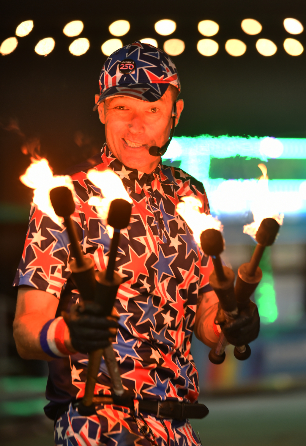 One of the performers at the Florida State Fair. Rolling by on a one-wheel board.