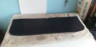 I just took possession of the latest jigsaw puzzle from AH Spares that is the boot trim set for my BJ7, It is a bit premature as I am not quite ready yet but I could not resist a peak. There are some sections that are easily recognizable and others I can not make out. I must say that I have never owned a Healey that had much in the way of the correct trims and carpeting so I am pretty green regarding what goes where. I can see that the middle piece fits to the face of the bulkhead at the back of the boot, the piece to the left may or may not fit around the top rail above the middle piece and I do not have a clue where the other two pieces on the right fit. Further more it appears to me to be beneficial to fit most of the side trims with the shroud off as there is more than a bit of a cutting to do to get the individual pieces to fit. On that note, would you provide cutouts in the trim for access to the bolts holding the wings (fenders ) on? I have a pot of contact adhesive that the Jaguars use for their trims, apparently, it does not age harden ( I will soon find out if that is true because I bought it some years ago and it has not yet been opened
