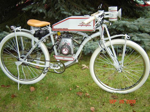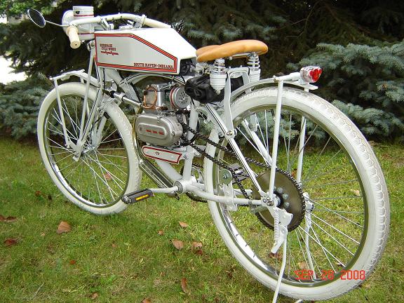 This is the HoughMade Cycle Works 71 (my last name being pronounced "hoe"). Not a strict replica, it is an homage' to the motorcycles of the pre-WWI era.