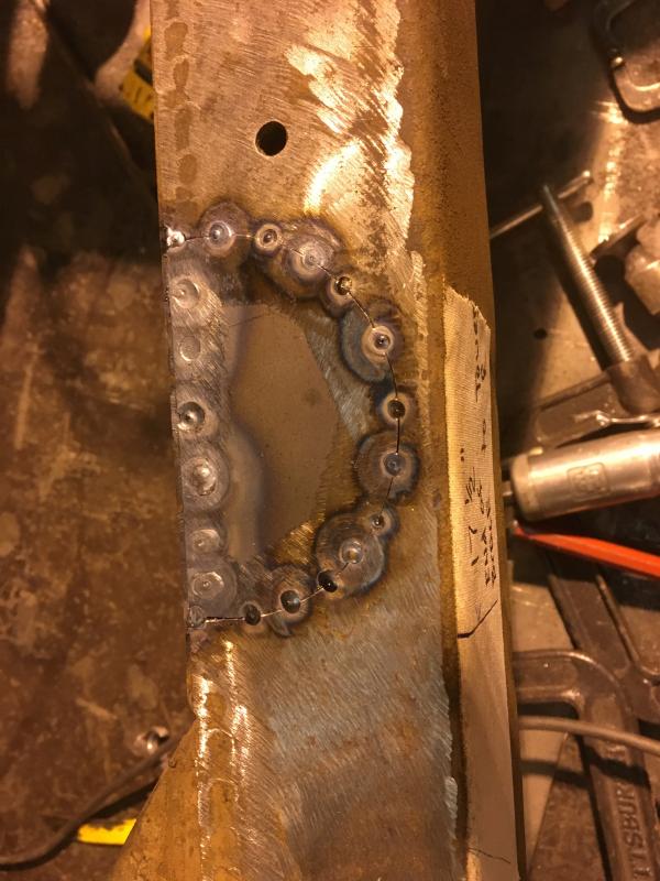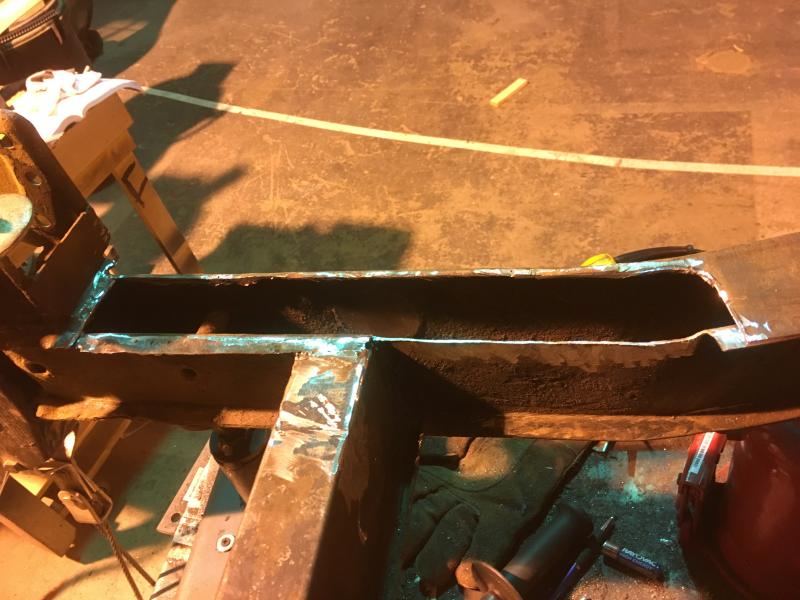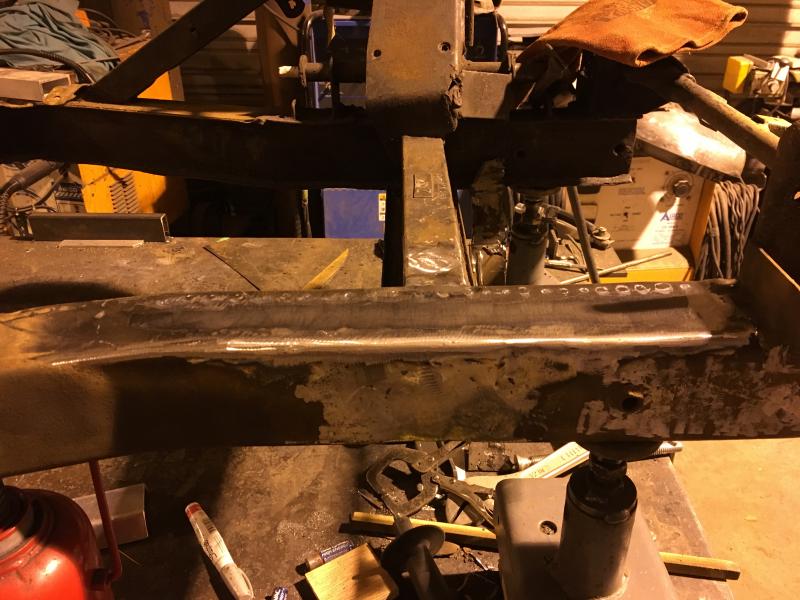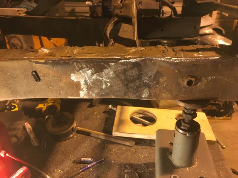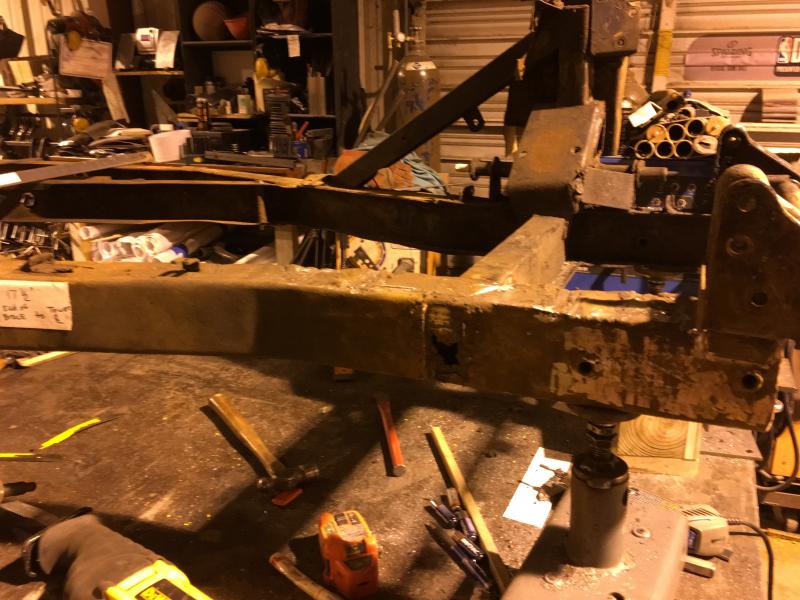Hi John, I have 2 lasers that I will be using to setup the final alignment, tack welding, and final check before and after welding. I had forgotten about using a water level to check the floor. I have a very accurate 6 foot level I was planning on setting pads to measure off of to level and check the frame for twist. The water level will be a great way to make sure all the pads are shimmed to a perfect measuring surface. Last night I started removing the extra plates to get a feel for how hard this will be. Pretty easy to remove the plates so I am not worried about this repair. The top 18 inches of the top of the passenger frame rail will have to be replaced. Whoever did the welding built up areas with weld metal, in some places it is a pad 1/4 inch thick. They had no idea what they were doing. Thank you for the suggestion, that is great to have ideas that make the repair easier and better. Frank