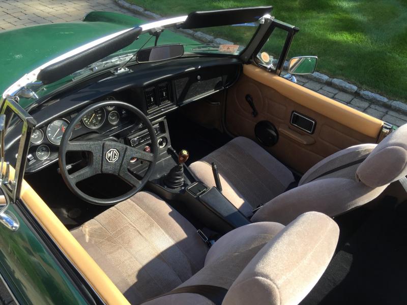 69k miles, one owner before me. Great driver, starts easily, excellent oil pressure, no taps/knocks. Usual British car oil leaks. New redline oils in drivetrain. Nice, complete example of a late 'B. Has minor rust behind/below the wheels, structural channels are fine, floors solid, battery area solid, bulkheads solid, spring mounts solid. Paint is OK, some sap spots, etc. as the car sat for a while. New alternator, fan motor, hoses, plugs, wires, seat belts, dash cap, fabric tailored seat covers, etc. All gauges, clock, switches and controls, interior lights, etc. work. New cheap radio. New Hankook 185/14 tires, trim. Shocks good, front bushings will need attention over the next few years. Brakes good. Most original emissions plumbing in place.