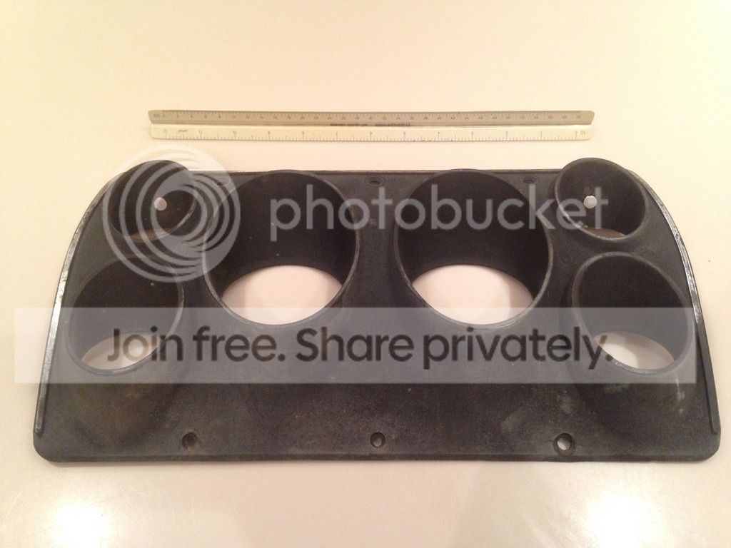 I could post a pic but basicall it is about a foot long about 5 inches wide - slightly curved and 6 holes for the gauges.