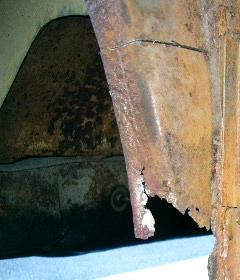 Hows this? This is a shot of the passengers side inner quarter panel support and inner wheel arch. This area was completely gone on both sides. Actually when I started tearing it all apart my floor pans didn't look as bad as yours in that area. The damage inside that area is usually worse than on the outside. I don't think the factory put any effort at all into corrosion prevention. Probably wasn't a high emphasis item on those days. I'll update that album soon when I knock out some more work. I just ordered the stuff necessary to attempt lead soldering of the body panels...that ought to be entertaining!