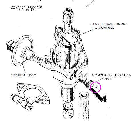 Just so everyone is clear, each mark on the vernier scale of that distributor adjustment equals 4 degrees (advance or retard, depending on which direction you're adjusting). There's provision, therefore, for quite a bit of adjustment without turning the distributor body.