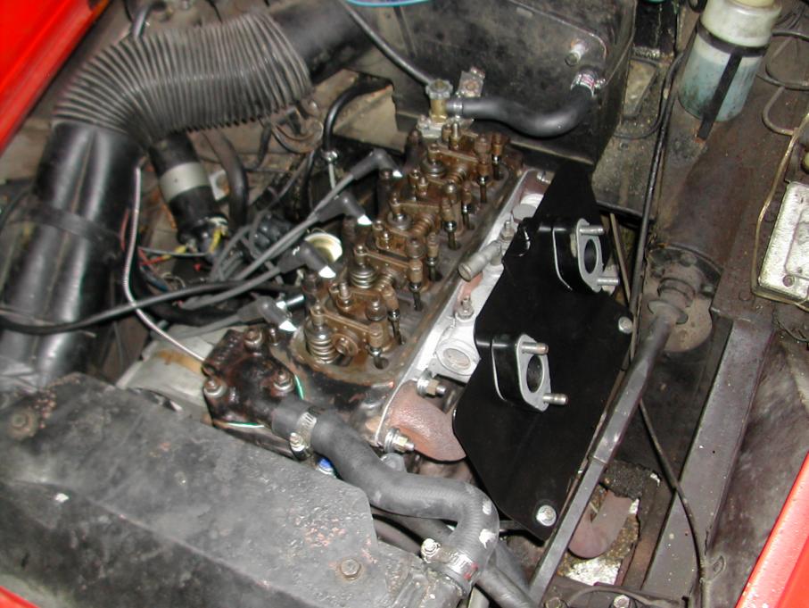 Well as all jobs start out, last fall I decided I had to get the seized #3 sparkplug out that had been in there since I got the car in the fall of 2010... plug would not come out, so off comes the head & soak the plug from backside with 50/50 tranny fluid & acetone... does not budge... plan B, set the impact on a low setting, bit my lip & walk the plug out... success & no stripped threads, thread chaser & voila ! Plug threads in perfect & tightens up... notice the carb intake gaskets are non existent, manifold gasket non existent (replaced with generour dollops of high heat orange sealant - yikes !!, carbs had bee painted with silver paint by P.O., broken exhaust stud, corroded cross over coolant pipe, siezed temp sending unit (requiring a new dual gauge), incorrect manifold washers, head washers... and on & on we go as every Spridget job does :smile: