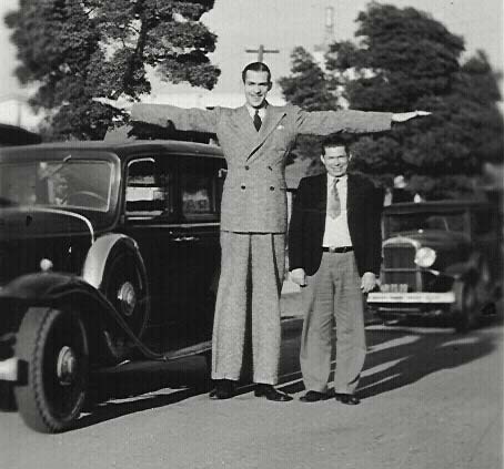 I'm guessing he is pretty tall. Judging by the comparison in height and where the tall guy is as to the car height of the time he is well over six. There’s still a lot of guy above that car roof line! Picture him folding up like a Swiss army knife into that car.