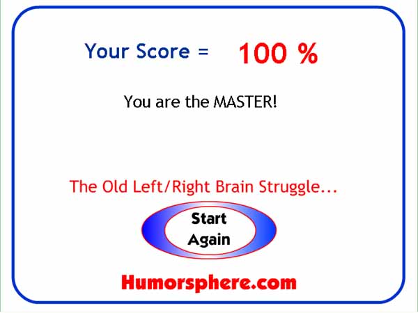 100% on the color quiz....the dancer is a real mystery. She spins clockwise when I look at her and if I concentrate she changes direction...I notice she spins clockwise until I start to read and then she changes direction. I notice reading causes me to use my brain differently..cool!