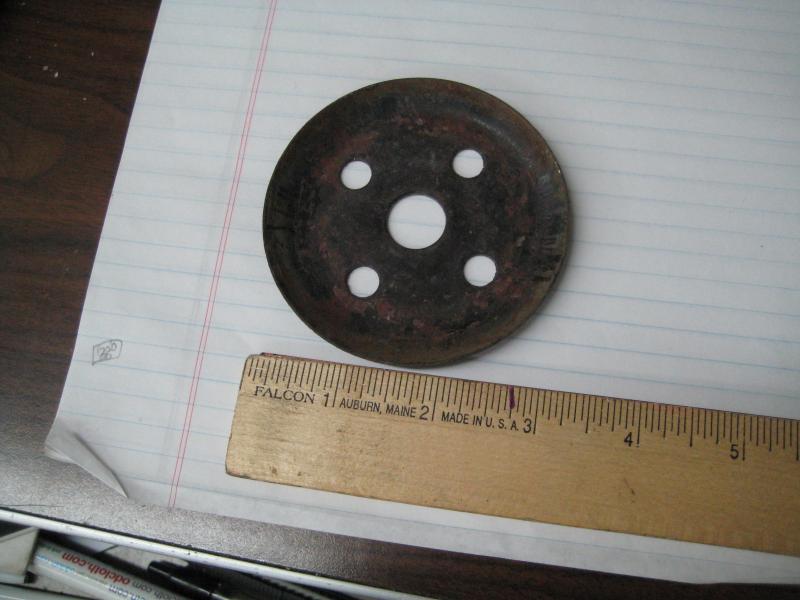 Bill, you've got it...well awfully close anyway. Pretty certain it's a #3720616 Corvette 58-68 water pump pulley reinforcement. These were found on 283 and 327 engines. Here's a photo of mine ('64 Corvette):