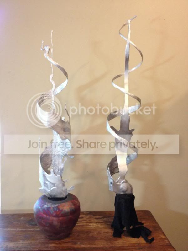I decided on the set to the left. I got a really good response on both pieces today when ol' girl came to take pics. She once worked with the entity that's putting on the show and sees everyhting that comes though. She really liked the boat. Here's to hopin for 1st place, a purchase award and cover piece for the invitation. :thumbsup: (Na, I don't ask for much. :laugh