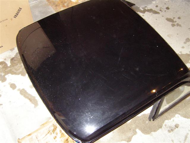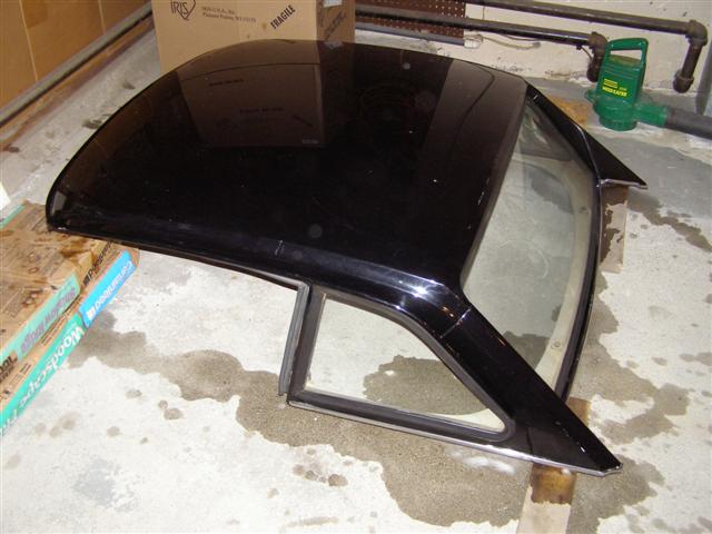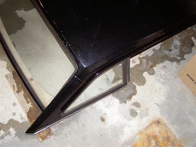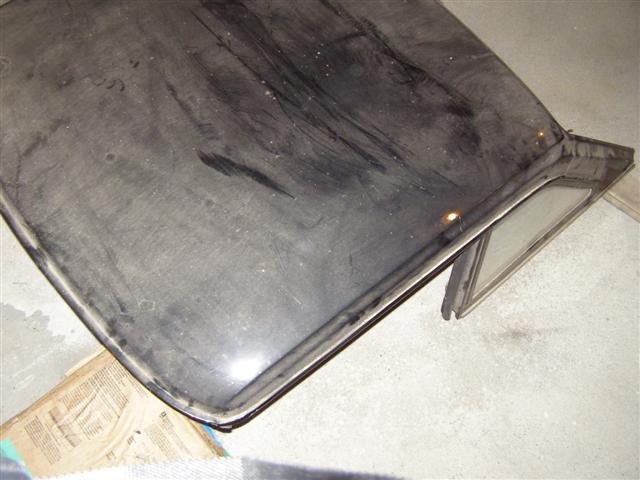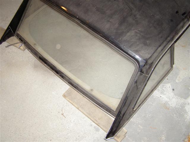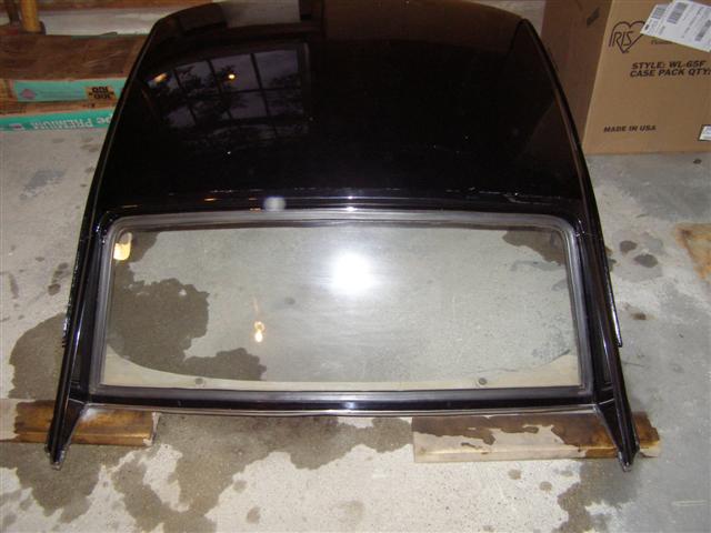 Every molding and weatherstrip is in place and the brackets and front bolts are there as well. The glass is all perfect, but the headliner is torn, but that would get replaced anyhow. One little dent in the rear bottom molding, a tiny ding in the top at the rear from the inside out, BUT NO RUST ANYWHERE!!!.