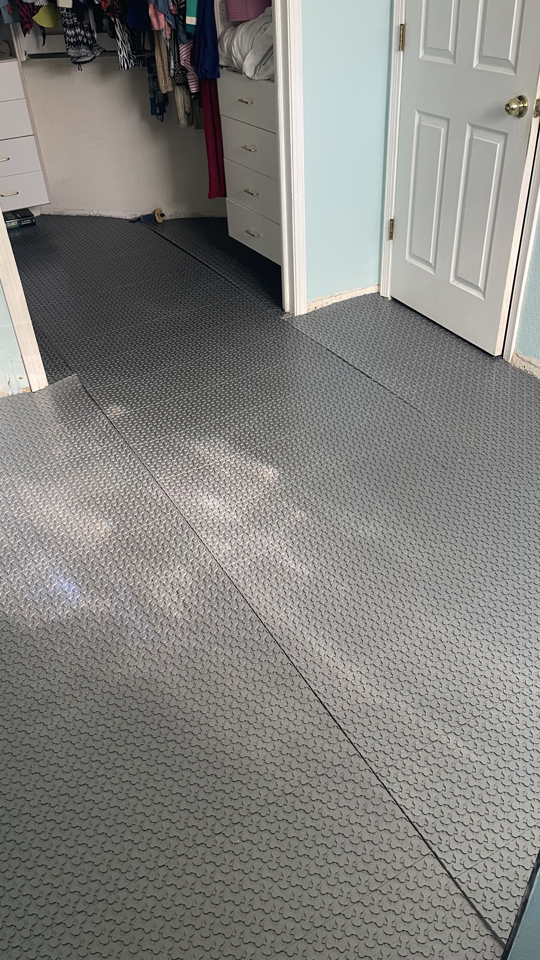 Flexbone decoupling mat ready to be glued to the newly leveled floor.