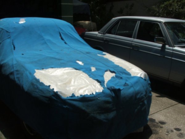 Found THIS in the AM. Li'l bastages are nesting. The cover was about shot anyhow but now a dare not put a new one on the car.