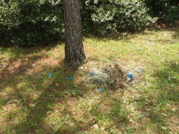 Found the nest next door, in a tall pine. After a good rain this AM it fell to the floor.