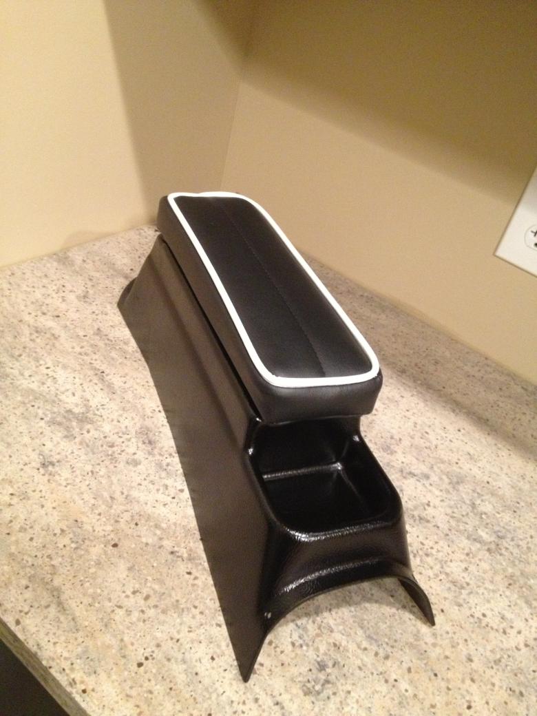 .....decided that it needed a bit of refreshing. I restored the box and had my local upholstery guys do the top. It's going in a car with "horse shoe" seats (black with white piping). Just seemed appropriate to mock the seats with the top.