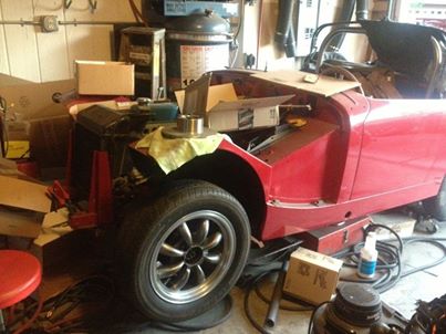 Back in mid-2005, I started a down-to-bare metal resto of a late '58 Bugeye. In early 2007 life got really complicated and all projects screeched to a halt. (I had trouble making it out to the garage, and there was no way that I could even get in the car.) Last Fall (2012) my fabricator friend Mike helped jump-start the stalled Bugeye project, which quickly morphed into a "resto-mod". I had a spare Datsun 210 5-speed (rebuilt by Bill M) on hand, a Datsun 1200 short block I acquired from Paul A via Bill M, and a mountain of both Datsun and Sprite parts I had acquired over the years.