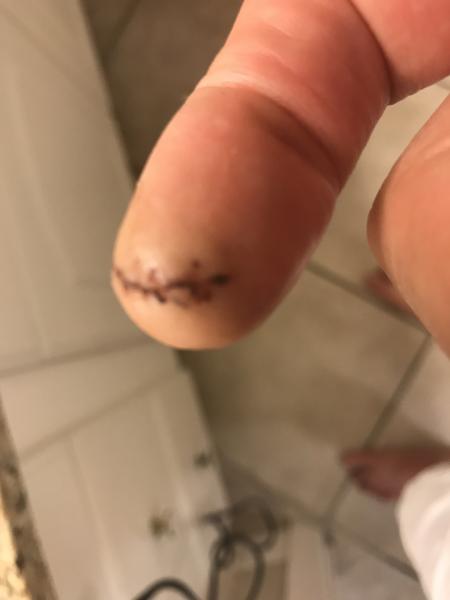 When bench running a model aero engine and attempting to stop it by putting your finger over the throttle intake it is always wise to notice that there is a propellor running at several thousand rpm between your finger and the throttle otherwise it will end badly (it did)