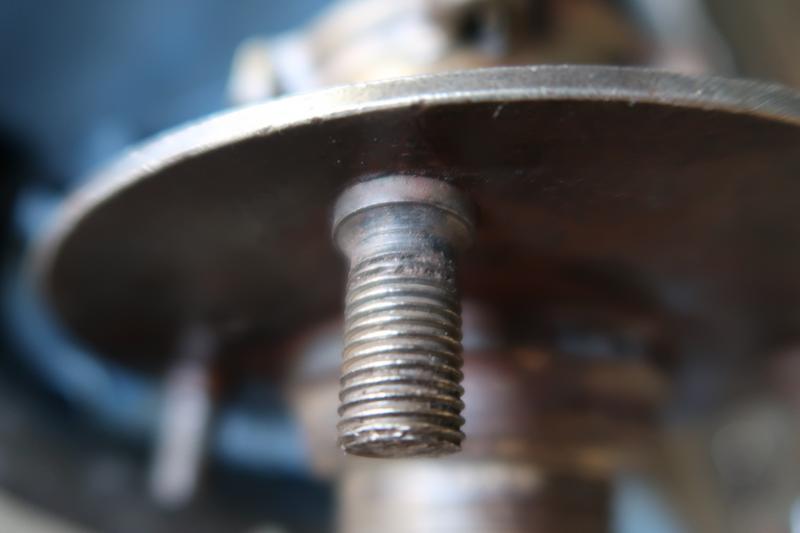 I currently have wire wheels on my TR3. I would like to have the option of using some mag style wheels. I have found some knockoff mag wheels, but would rather change the current front and rear studs to the longer ones required for disc wheels, then use a spacer if I want to remount the wires. I have read that the fronts are a relatively simple press out, then press in the new ones, but the rears are much harder because the studs are peened to the hub. I removed a rear axle, see pictures, and the peeing sufficiently widened the stud, but I think the way they did it, I can carefully grind down the stud and remove it. In the third picture, you can see the outer side of the stud on the hub. It has a shoulder that makes me think it was threaded in from the front side, then cut off and peened.