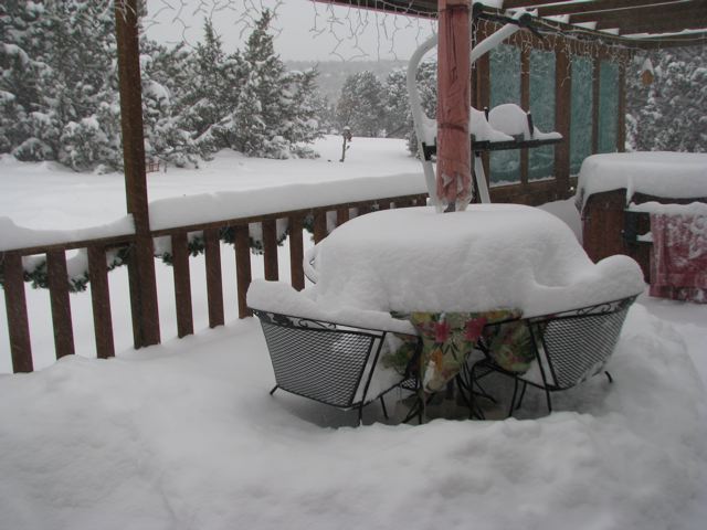 I'm home today due to snow storms passing through NM. Been snowing all night, but here are a few pics from around the home this morning.