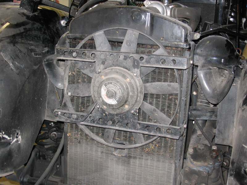I installed a 12" Kenlowe fan that I bought in England. It is mounted in front of the radiator and pushes air through the radiator. I made the brackets myself as I didn't like stuffing long screws through the rad between the fins.