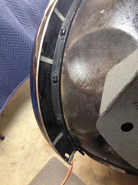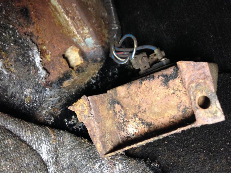 only to find a substantial hole where the lower bolt resided at one time: correction : a hole backed by expoxy, rotten wood or bondo. None of it good shape.