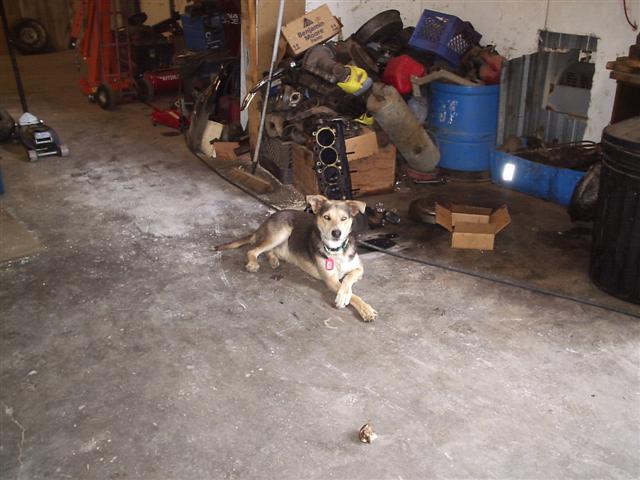 As I'm working myself into a frenzy in my shop( please excuse the mess) I looked over in front of my swamp cooler and this is waht I saw...he HATES the heat, stays in the shade on the odd occasions he ventures outside...is usually on his back with his butt pointed at the cooler...sound asleep. Who is leading the dogs life???