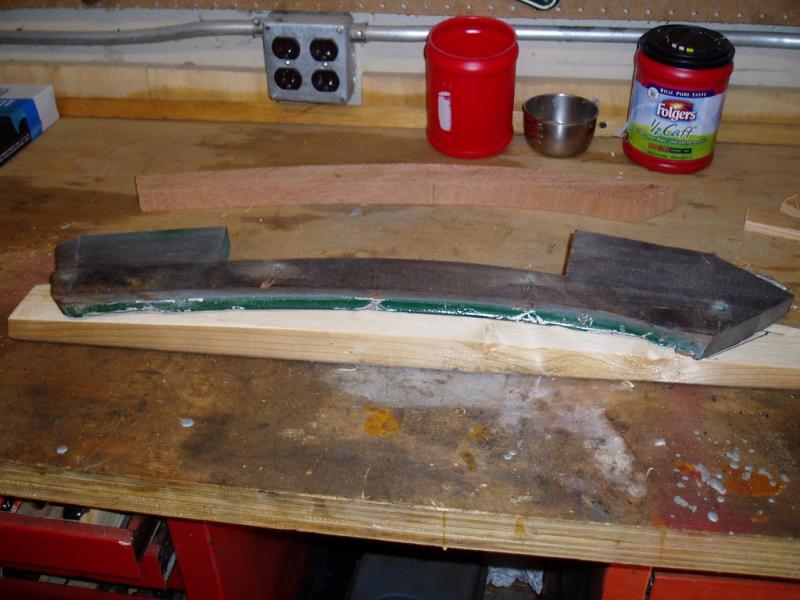 If you look closely you will see two tapered shims (shingles) under the middle. I did that to "over bend" allow for "spring back" when I relieved the clamps. It turned out that two shims were not enough and I did the same piece again with two thicknesses of shims, overbending by about 1/2 inch.
