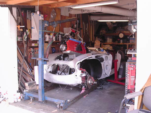 Hope you have a high ceiling, or doing the work outside. Don't try to roll the engine hoist once the engine clears the body; instead, roll the car backwards and lower the engine close to the ground for more stability. An additional hand is helpful to keep the trans from damaging the body, but it can be done solo if you work slow and cautiously.