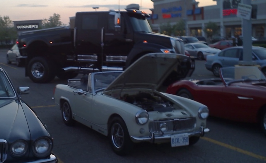 tried to go to one last night with Mark in his Healey (Abarth69) it didn't start till next week and then it started to rain. Lovely night tonight about 68 degrees. Actually was an Italian Cruise night so they wouldn't let us come to close - about 6 Ferraris, 2 or 3 Maseratis a bunch of new Fiat 500s, some old ones and even a Topolino. Lots of Vette's! Anyway, this truck comes up and parks behind us. I think with the Midget I am far more secure in my masculinity 'cause one of us was compensating.