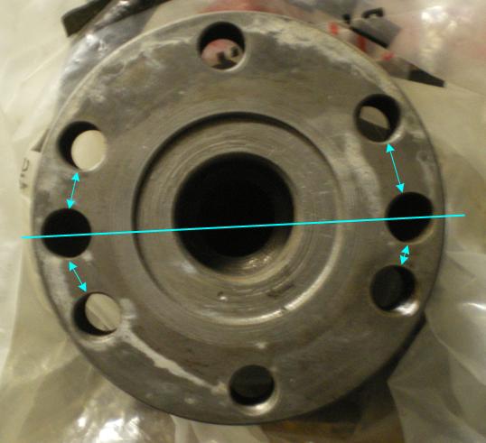 I'm positive. The dowels are in line, but not through the centerline of the crank. If you put a straightedge through the center of both, you will see it does not line up with the crank centerline. Also, look at the relationship between the 6 evenly spaced threaded holes and the positioning of the dowel pins in relation to the threaded holes.
