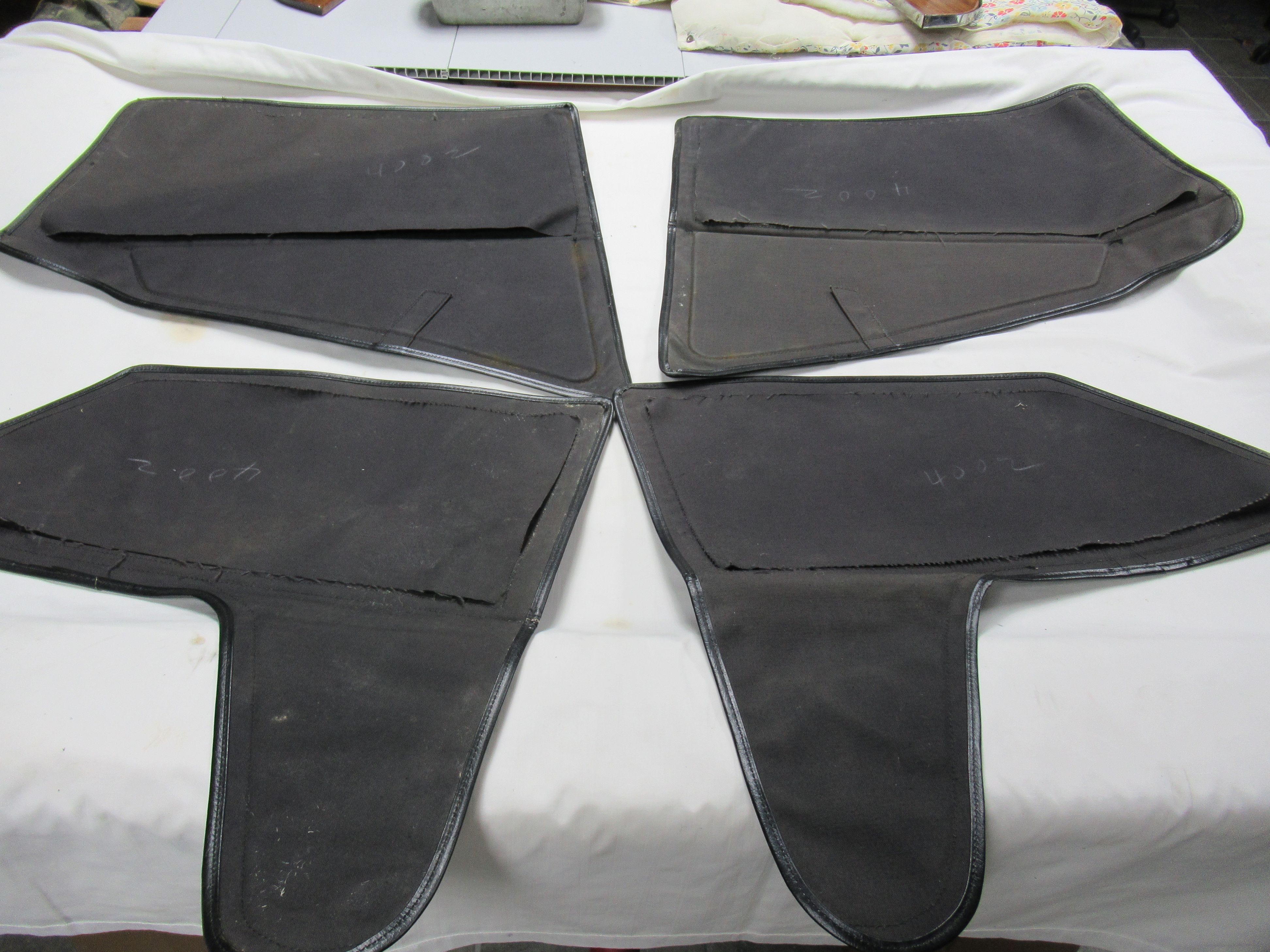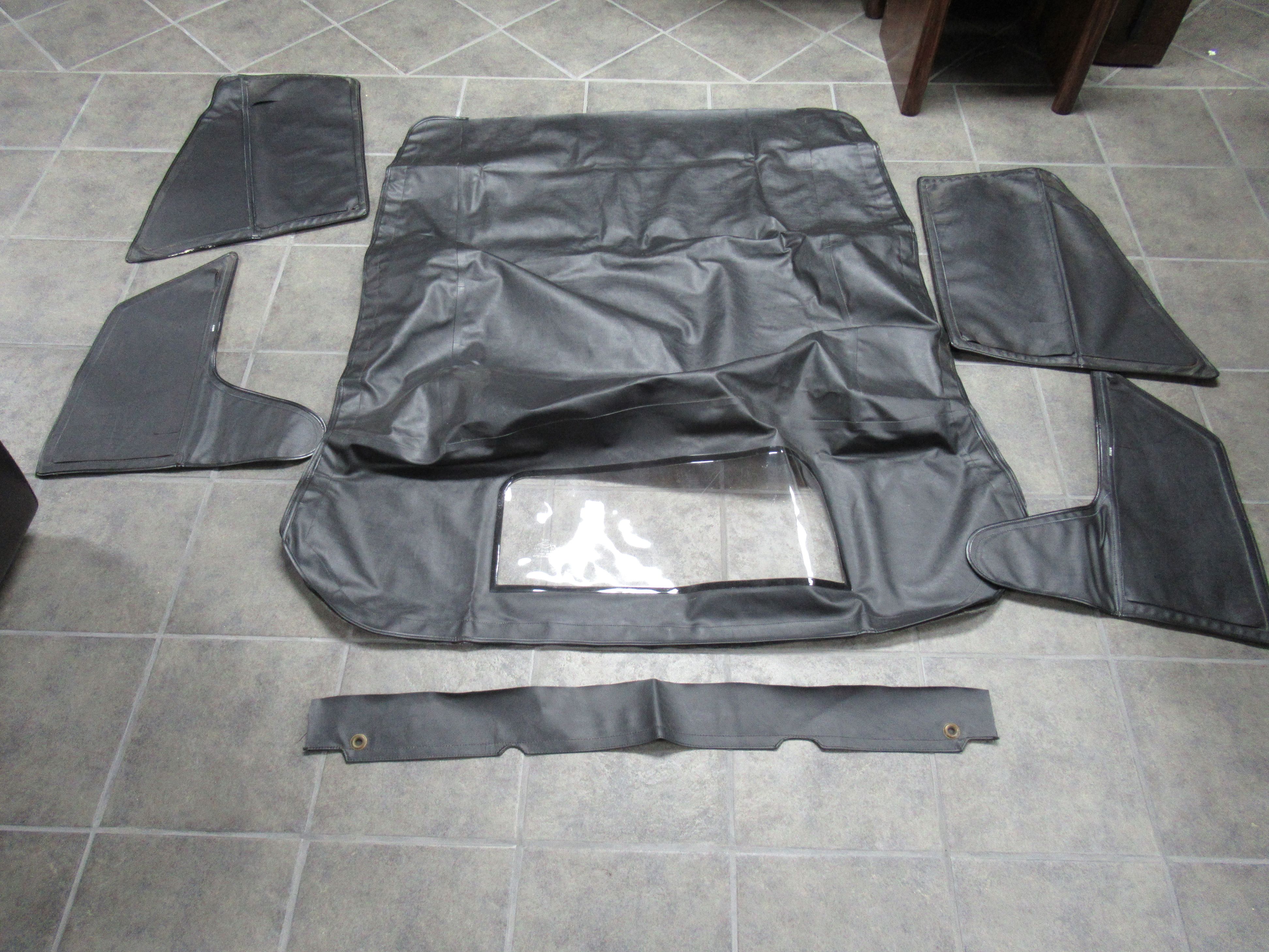 For Sale is a NORS AMCO Black Convertible Top and AMCO Side Curtains for a MG TC. They have never been installed. I used the top as a pattern for my TC and it will fit nicely. The side curtains are also new and still have their protective covering. The last picture, showing my messy table, was taken through one of the side curtain windows to show the view. The side curtain windows are clear but contain multiple tiny imperfections. $300 for everything, buyer to pay postage. Items located in Fredonia, NY
