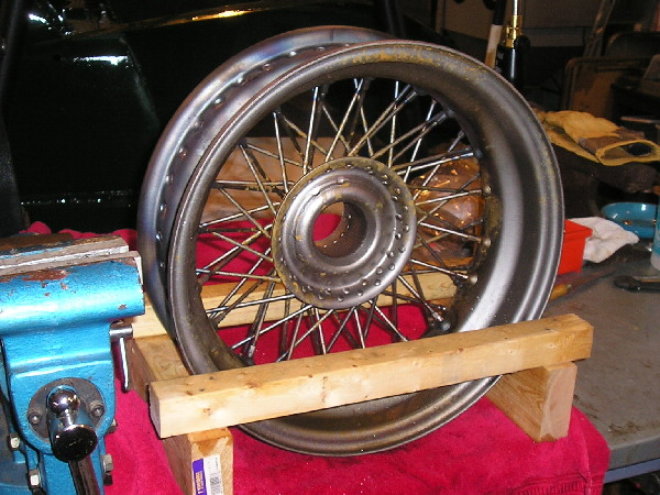 Just a quick note to ye who have not yet painted a wire wheel(or a set of the little buggers)Its a freakin nightmare.So after all the time and expense they still have to be blasted and powder coated......you could have gotten the Daytons for just a few more $$I have like 45k on the ones on my tr4 and they are great.Just check the tune once in the spring and rock on.