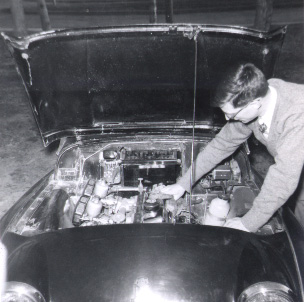 The daguerreotype was a bit before my time. I know it looks that way. But see a more modern photo of me in 1962, doing what most TR owners do before setting off on a trip, voyage, jouney, expedition, . . . .