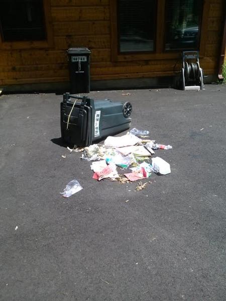 Hey, who hasn't seen their trash or recycling rollouts treated like this sans bears.