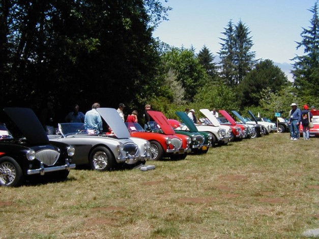 Sorry this isn't a very good picture, but the second Healey from left is a beautiful two-tone silver and grey Hundred seen at Eureka two years ago.
