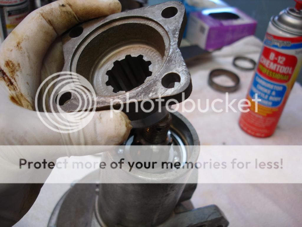Anyway...for checking the play, the drive shaft coupling goes on the tail shaft and gets torqued to spec. DO NOT install the rear seal for these checks.