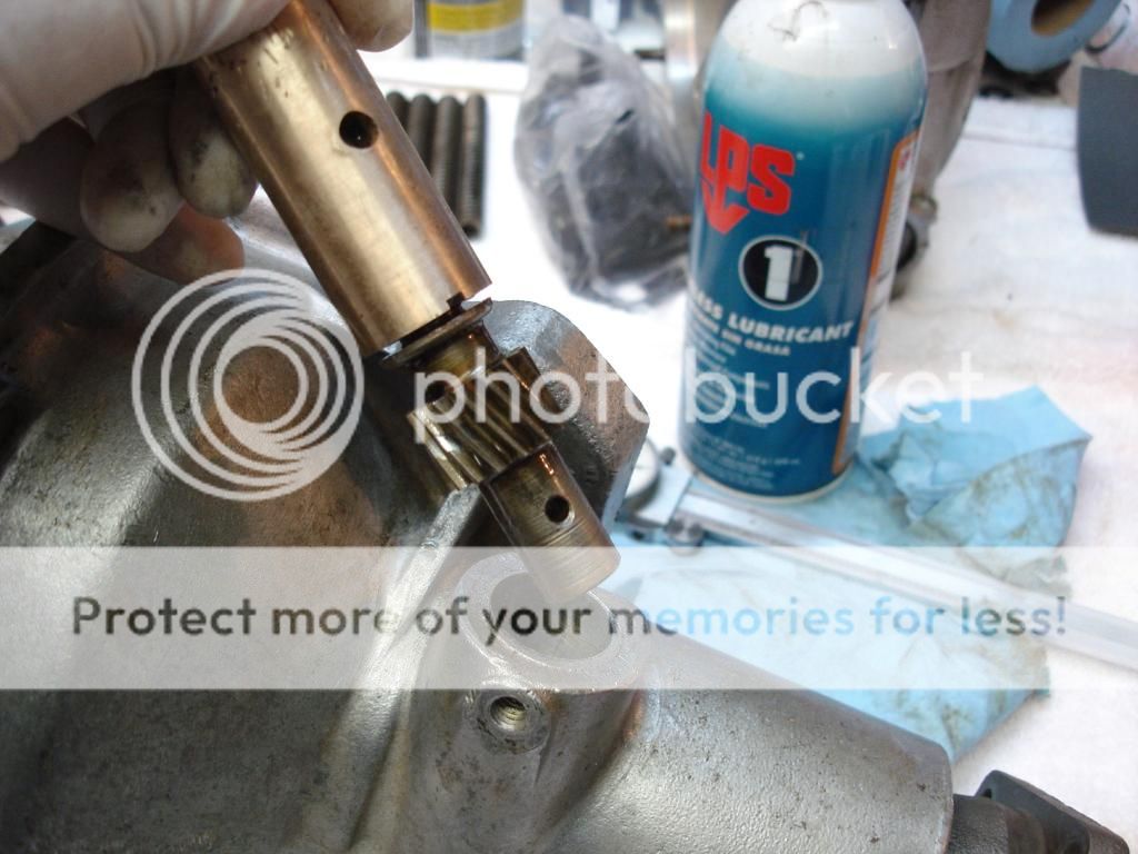Now is a good time to install the speedo gear and bushing. I use a drop of loctite 518 on the threads of the set screw, since it passes through into the "wet" part of the OD.