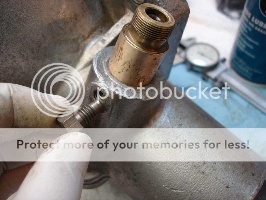 The hole in the plug does not go all the way through. It is threaded to hold the filter screen screw...(looks a lot better than in the picture in my first post!!
