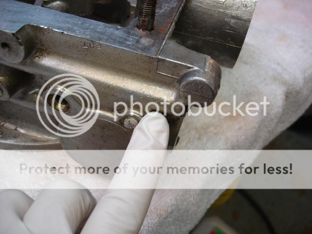Because it is essential to get the ball lined up with the pump cylinder, and the cylinder is pressed into its bore, you must line it up with pins as it is pressed in. Here are home made pins I used...