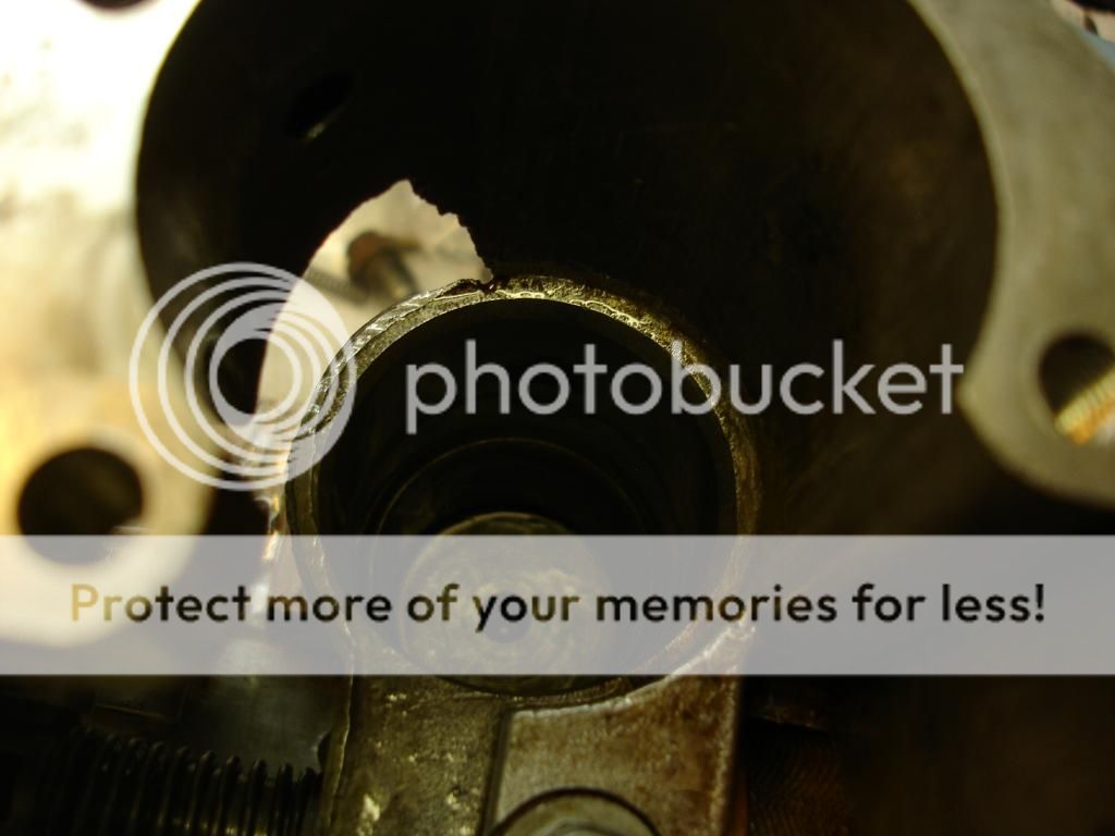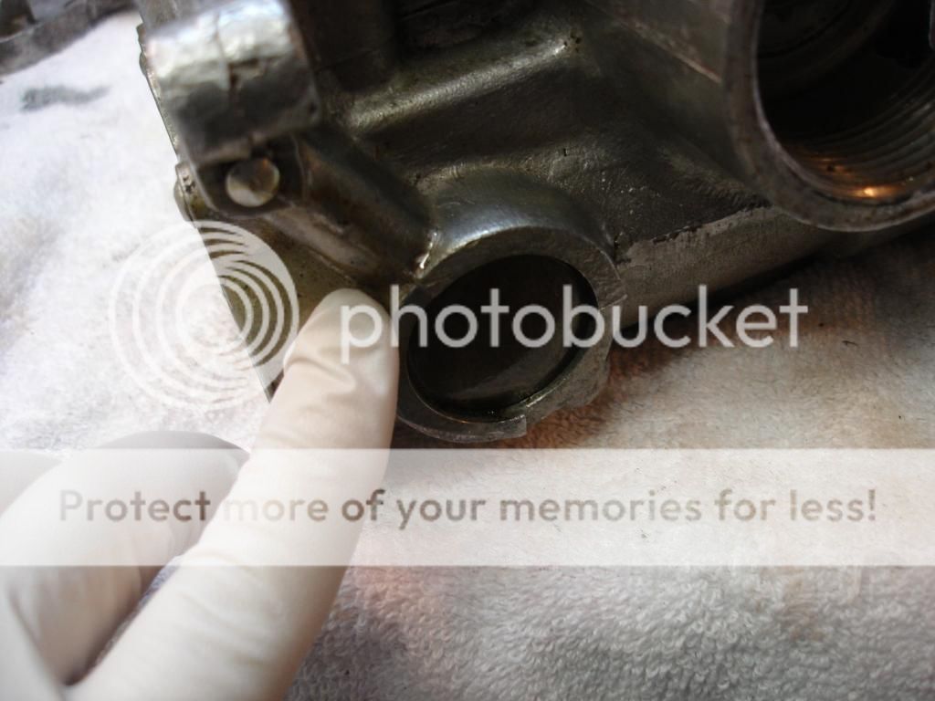 Here is the inside of the accumulator bore. There are holes about 3/4" up the bottom of the bore that relieve the extra oil to a passage in the casing.