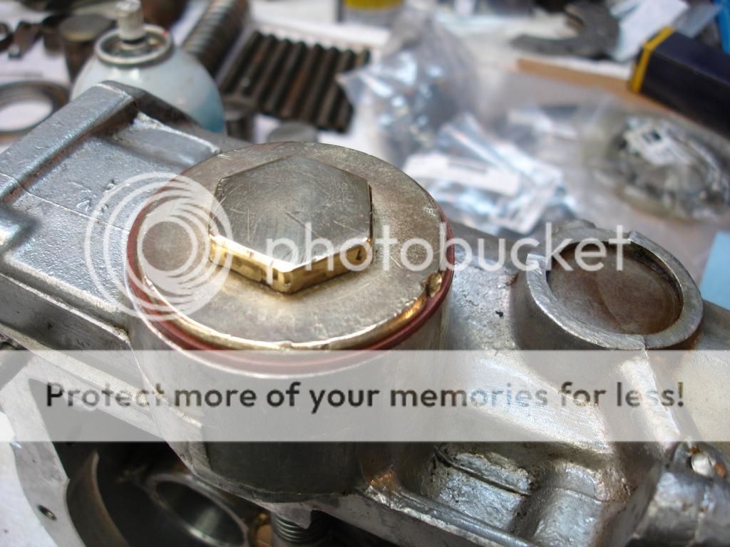 This is the assembly plug located on the top right of the case. It uses a copper washer to seal the plug.