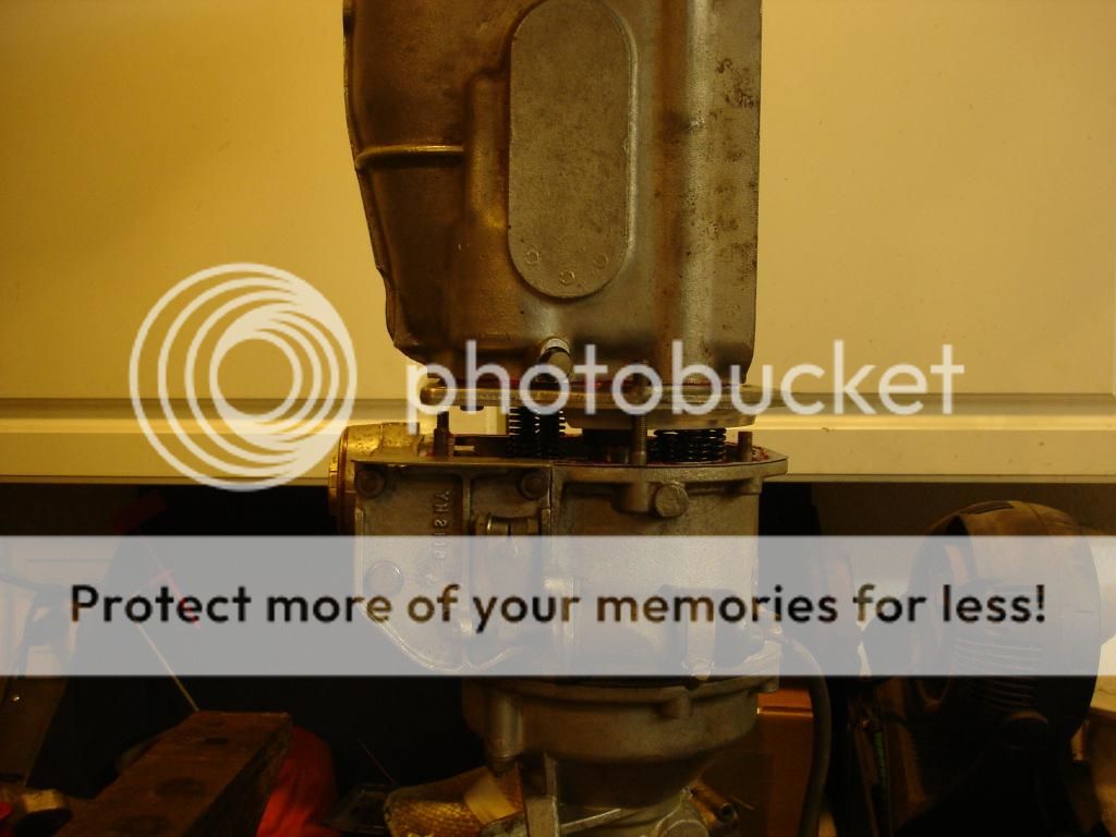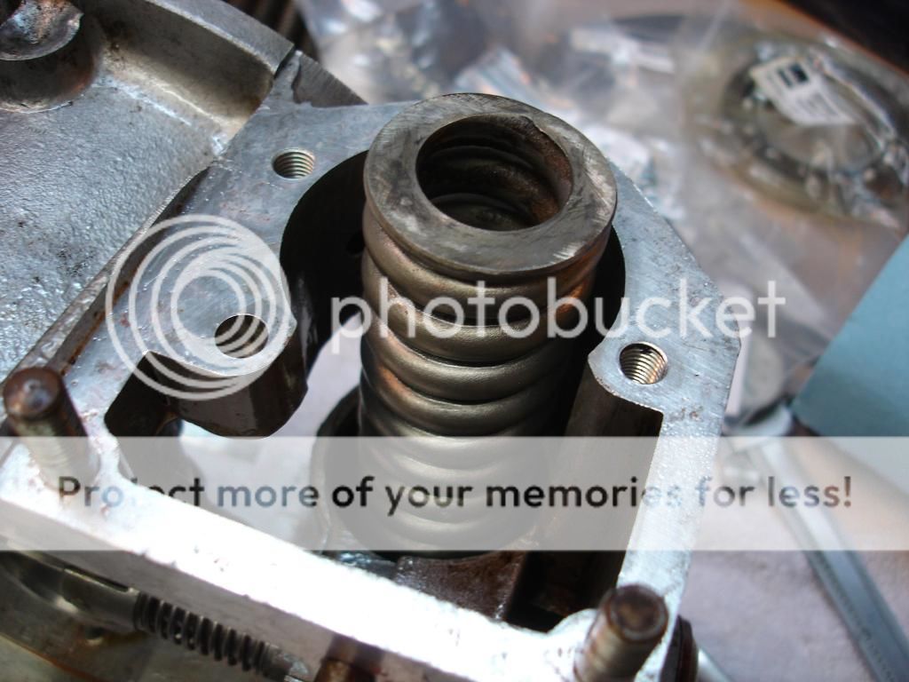 Now, the solenoid plate goes on. There are 2 long screws to work the spring down evenly and slowly. Finally 2 nuts are installed on the last studs and all torqued.
