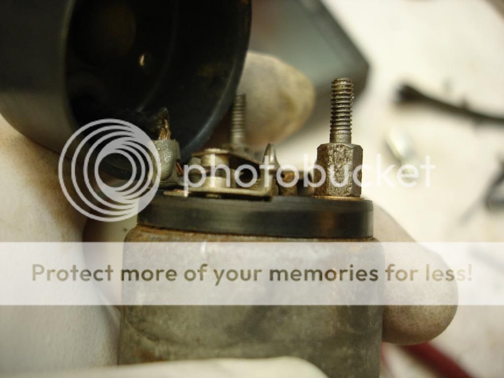 I have 2 old solenoids. In both, the plunger for the contact was dirty and stuck, so only the low amp coil was active. This just shows the cap removed and the contact. I cleaned it up and all works great now. So, the solenoids are repairable, to at least some extent.