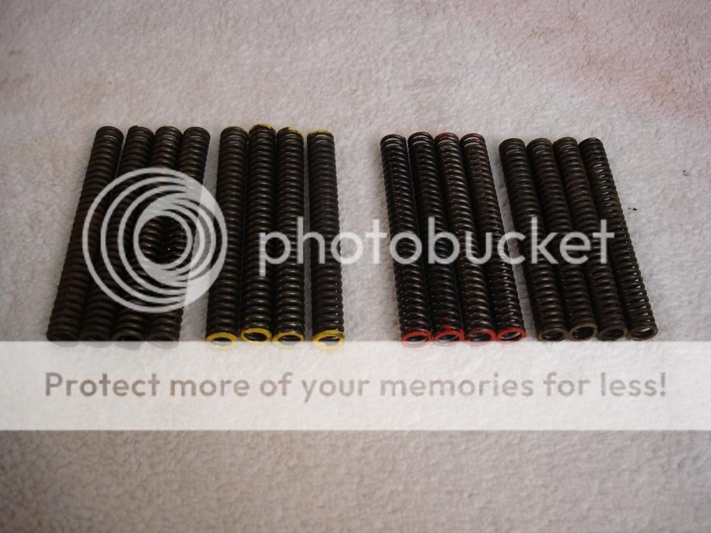 These are the OD release springs. The actuator pistons pull the clutch drum into the brake ring on the casing, and these springs push the drum back in contact with the annulus once the pistons are vented back to the case. There are 8 springs. I have them next to the originals for comparison. They call the springs "long" and "short", but as you can see, the length is almost identical. A better description is thick gage or thinner gage. I would not have replaced my springs, except the 2 at the top of the case were corroded. They only come as a set...about $64. Ouch.