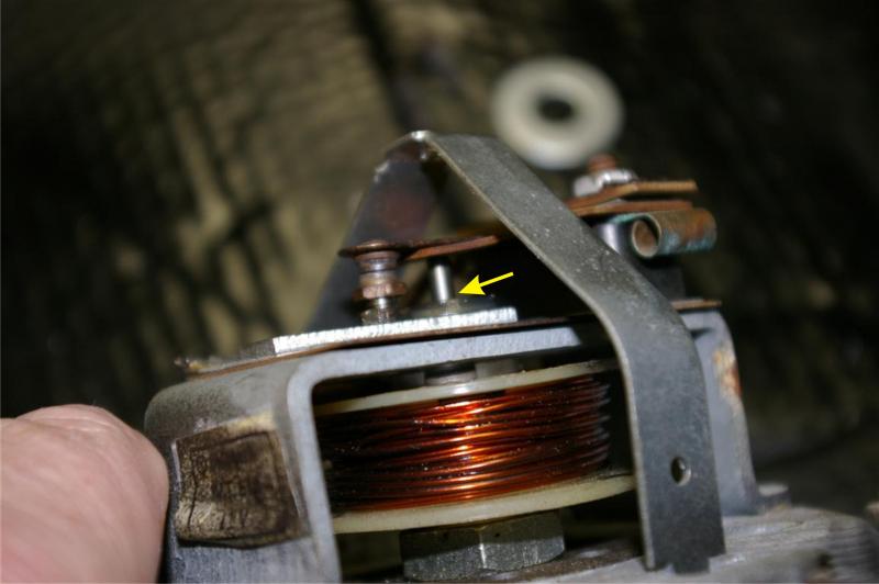 This is the rod that Mike was referring to, and even the manual tells you to routinely put a drop of oil on it. When the coil energizes, it pulls the diaphram upward. As the diaphram pulls up, it pushes this rod up with it.