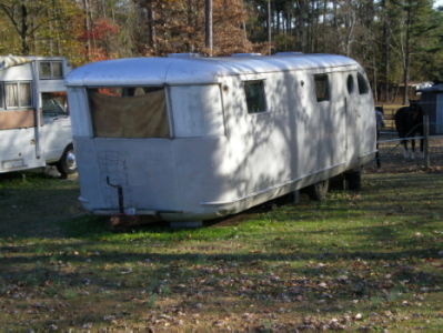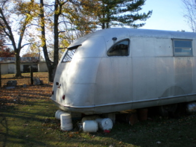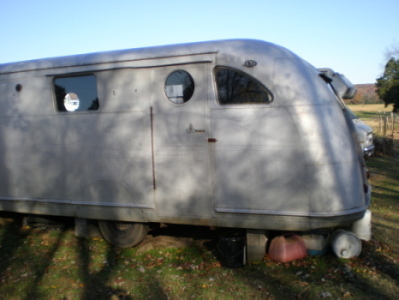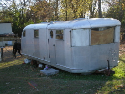 This was just offered to me for $1,500....interior is stripped down to the aluminum frame but original hard insulation is still there...floor is solid plywood....single axle.....it's missing its 2 corner curved front windows (hmm, can they be made?)