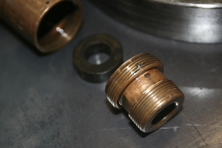 Yes, thx, it's 97 not 95. I'll have it re-pinned. Tedious, since it pins right into the threads. The depth of the bushing is set by the set screw. That pin apparently also has some role in controlling the height of the gasket.