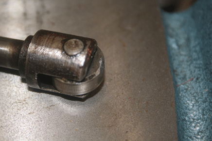 To prevent this threaded insert part from loosening, and maybe to set some mandatory end float, that threaded part was "pinned" just a bit shy of being tight into the bushing.