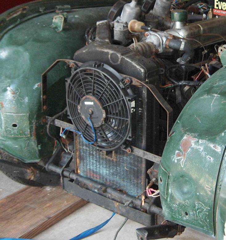 this winter I installed a Hayden fan w,o removing the apron but I did remove the grill and bumper. Also used the through fasteners. Everything went very well with good results.