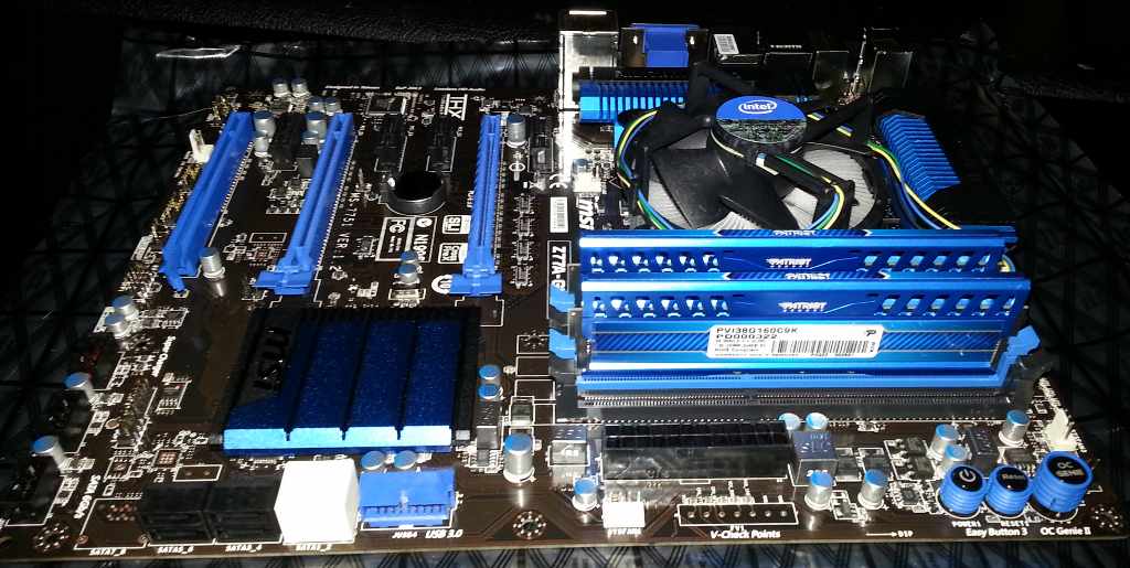 Computer failed to start a couple times yesterday. That was the last straw. Bought a new motherboard, CPU and memory. The component manufacturers have been paying attention to the modder crowd it seems. Turns out they are sharing the color formula for their anodizing.